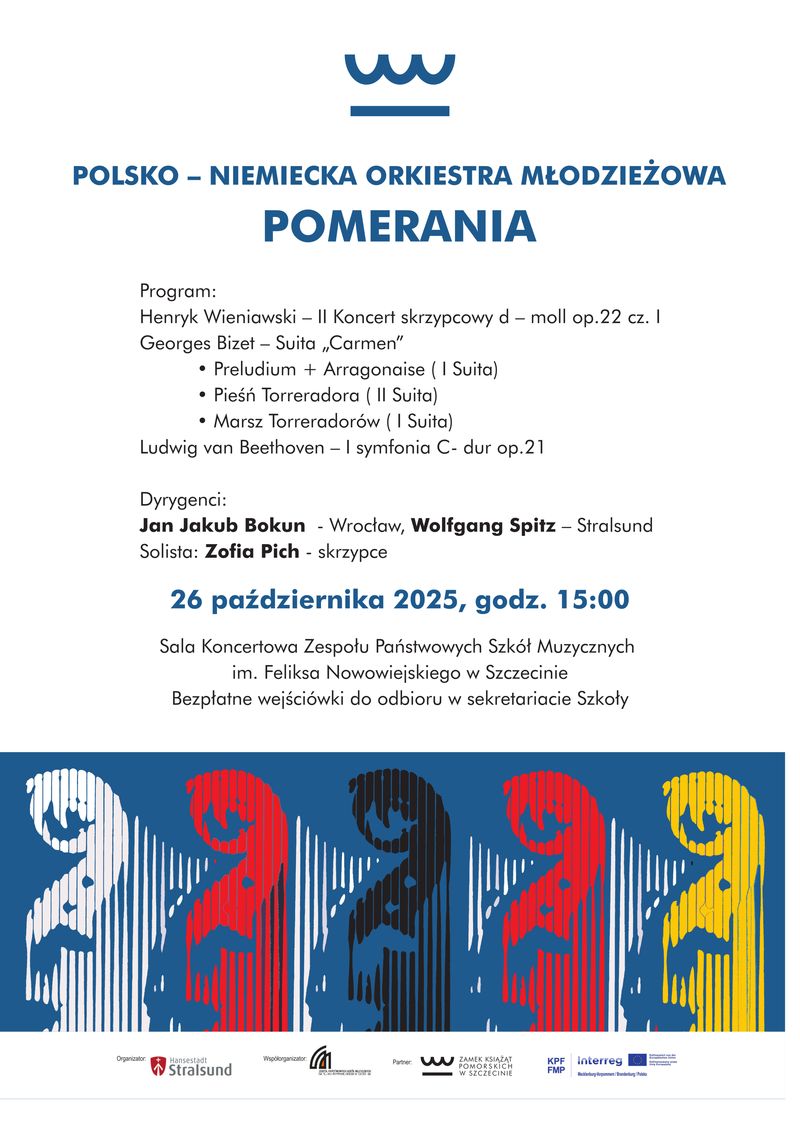 Mit Werken von Ludwig van Beethoven (1. Sinfonie C-Dur), Henry de Wieniawski (2. Violinkonzert d-Moll) und Auszügen aus den Carmen-Suiten von Georges Bizet studiert das Jugendorchester ein ambitioniertes Programm ein. Im Rampenlicht steht dabei die ausgezeichnete Stettiner Solistin Zofia Pich, Violine.