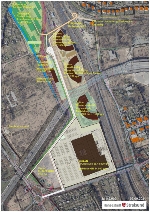 Das wurde notwendig, nachdem die Bürgerschaft für die bisher vorgesehene Fläche an der Greifswalder Chaussee eine Prüfung auf Machbarkeit gefordert und Bedenken bezüglich der Umsetzbarkeit geäußert hatte. Diese Prüfung ergab, dass die Erschließung und Bebauung im erforderlichen Umfang zwar grundsätzlich möglich ist, aber deutlich mehr Verkehr entstünde, der den ohnehin stark frequentierten Bereich zusätzlich belasten würde. Auf der Suche nach einer Alternative wurde ein - aus Sicht der Stadtentwicklung - sogar noch besserer Standort gefunden. Dieser berücksichtigt sowohl die Wünsche des Investors nach Präsenz im touristischen Verkehrsstrom und entsprechenden Flächen für eine signifikante Größe, die auf einen Einzugsbereich von 100 bis 150 km ausstrahlt, als auch das städtebauliche Potenzial und die Möglichkeiten zur Entwicklung der nördlich gelegenen Lokschuppen. Vorgeschlagen wurde das Areal an der Abfahrt Feldstraße, von der Ortsumgehung kommend - mit ca. 44.000 Quadratmetern.